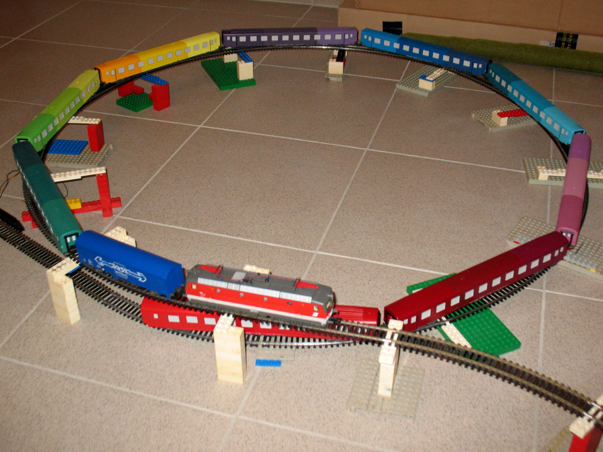 Zur Abschätzung ob für geplante Gleiswendel die Zugkraft der Lokomotiven ausreicht, wurden die Wendel mit den geplanten Dimensionen mit Stützen aus Lega aufgebaut. Mit dieser einfachen Methode lässt sich vor dem Aufbau einer Wendel bereits prüfen ob die Radien nicht zu klein und die Steigungen nicht zu groß sind.